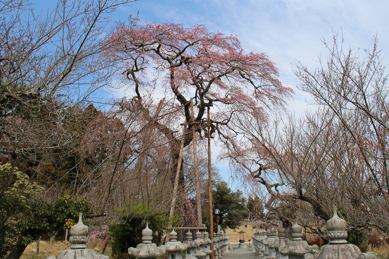 町の文化財にも指定されているしだれ桜は、早くも開花しました。今年も見事な姿を見せてくれる事でしょう。寺院前の町道沿いに咲く水仙は今が見頃です。